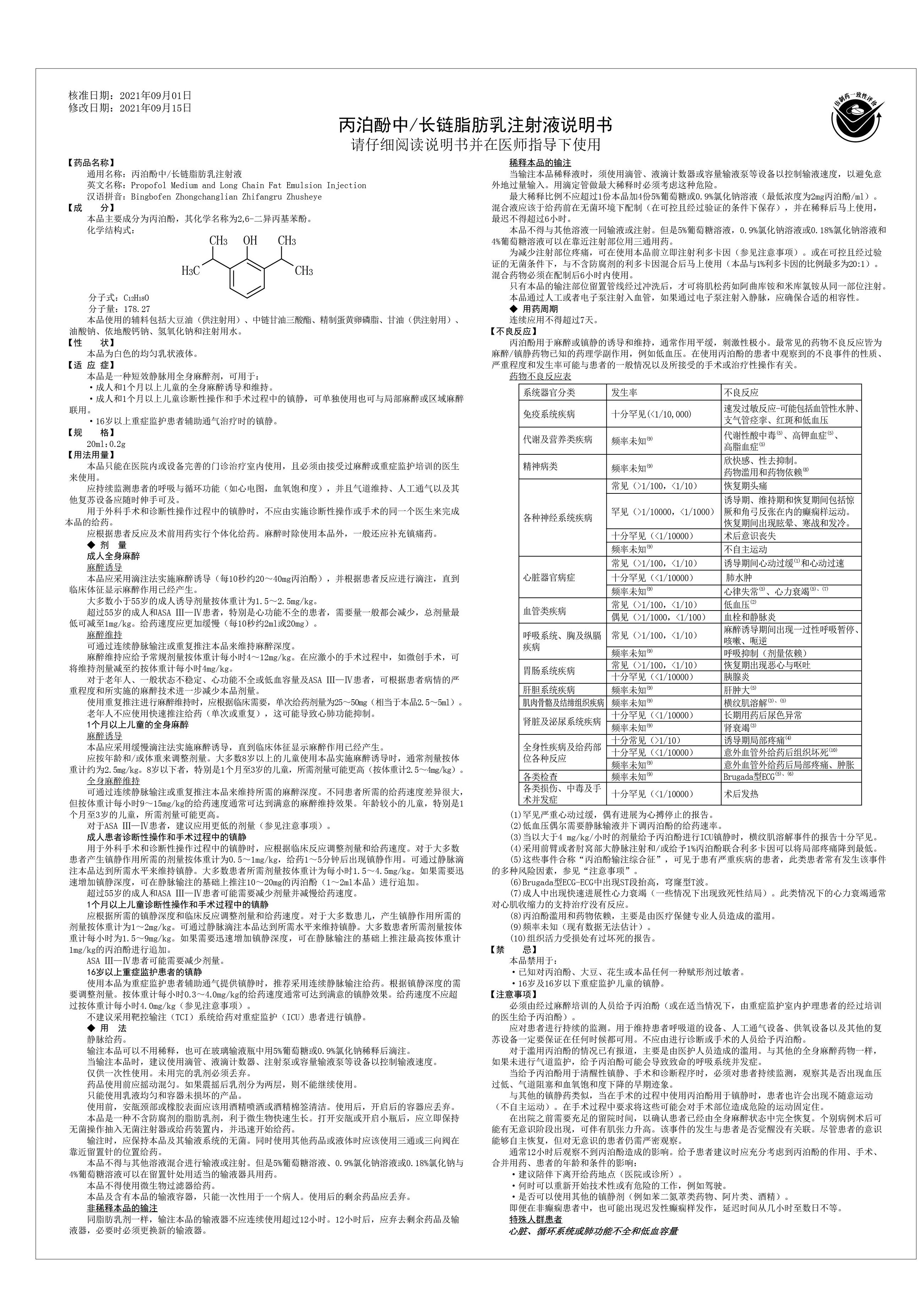 【通用名】 丙泊酚中/长链脂肪乳注射液