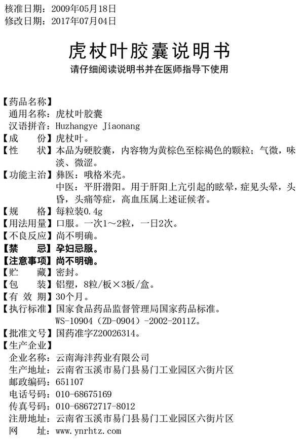 【通用名】 虎杖叶胶囊